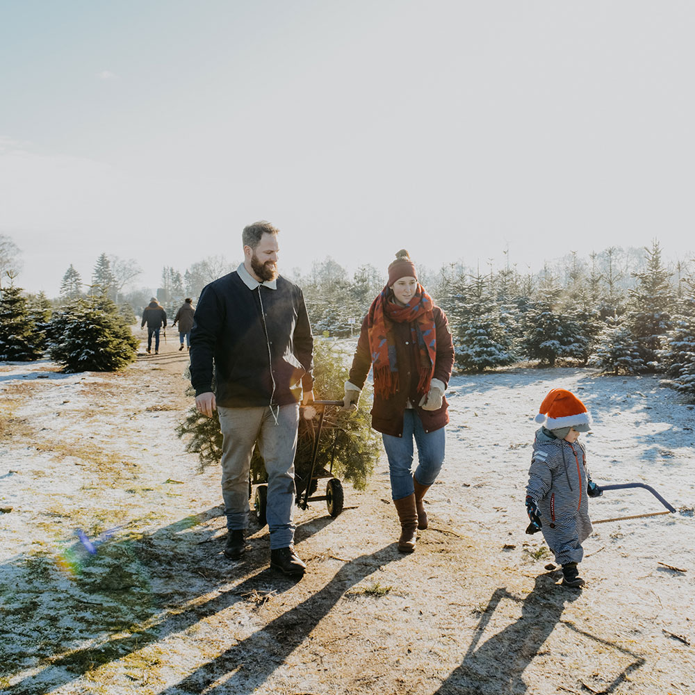 Machen Sie das Sägen Ihres eigenen Weihnachtsbaums zu einer neuen Tradition und genießen Sie die festliche Atmosphäre auf unserer Plantage!